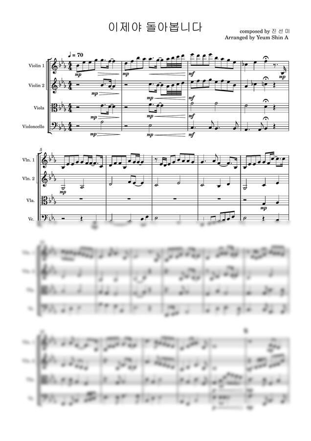 진선미 - 이제야 돌아봅니다(현악4중주) by 염신아