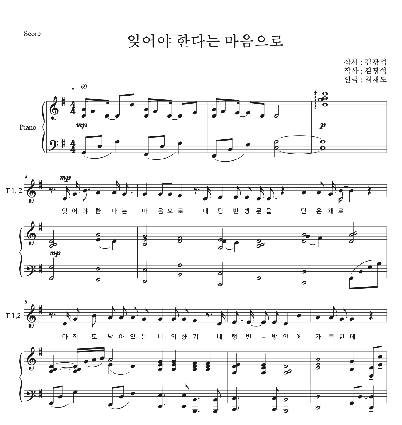 김광석 - 잊어야 한다는 마음으로 (남성합창) by 편곡 : 최재도