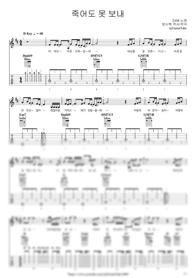 D Key / 3p / 2단(노래+반주) / 5선(Staff) / 타브(TAB) / 가사(Lyrics) / 코드(Chords)