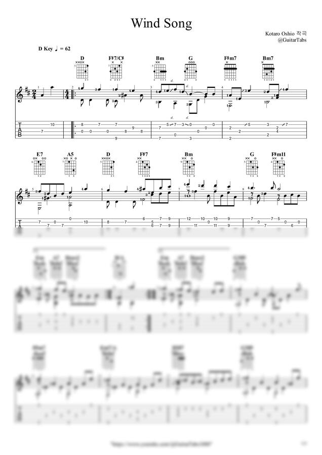 Kotaro Oshio(코타로 오시오) - [프리미엄] Wind Song(바람의 시) by GuitarTabs1