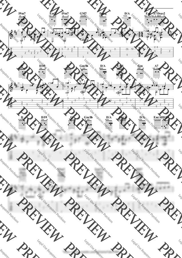 프리미엄 악보는 오선, 타브, 코드, 운지 등 생략된 기보없이 모든 정보를 다 보여주며, 코드는 악보내에 배치하고 다이어그램의 크기도 키워 직관성을 높이고, 보표단의 간격은 넓히는 등 연주자의 가시성과 편리성을 최대한 높힌 고급 악보입니다.