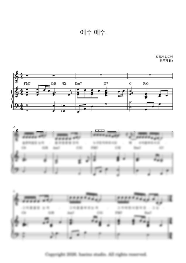 김도현 - 예수 예수 (쉬운악보/C key) by hz1