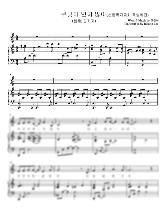 <무엇이 변치 않아 _원제: 십자가> 특송 버전 C key 피아노 반주 악보입니다.