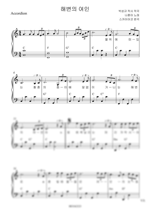 나훈아 - 해변의 여인 (아코디언악보, 난이도 초급) by 스카이아코