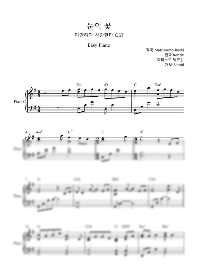 박효신 - 눈의 꽃 / 미안하다 사랑한다OST (Easy Piano) by Bambi0
