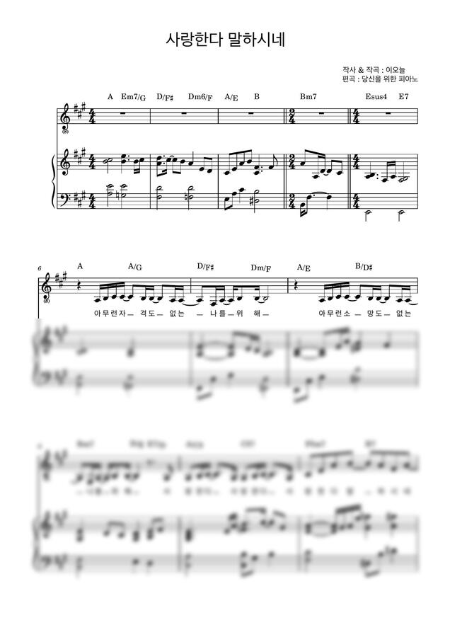 A키 (전주포함) 멜로디 + 가사 + 코드 + 피아노 반주 ( 3단 악보입니다 )