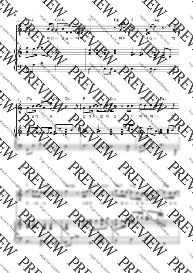 C키 (전주포함) 멜로디 + 가사 + 코드 + 피아노 반주 ( 3단 악보입니다 )