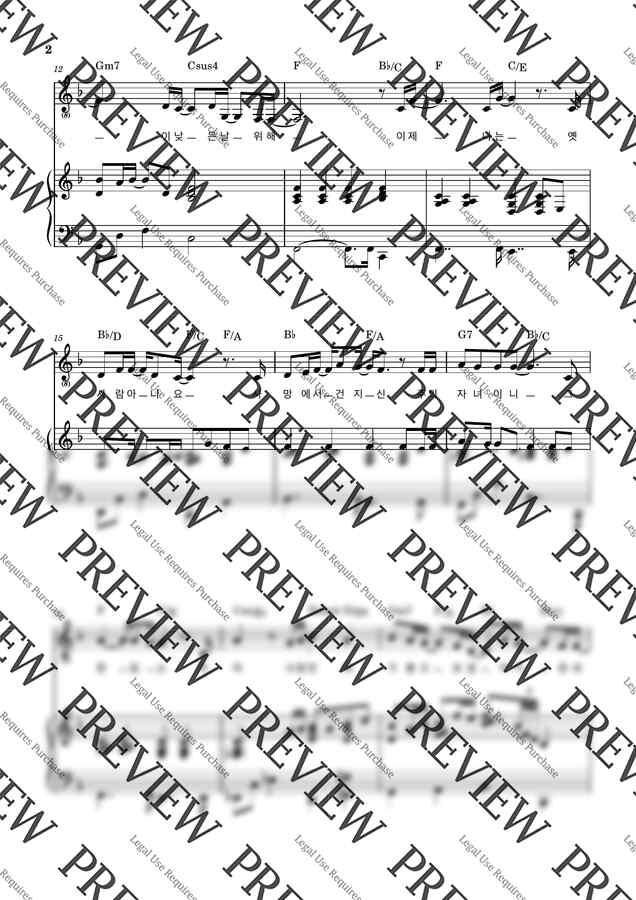 F키 (전주포함) 멜로디 + 가사 + 코드 + 피아노 반주 ( 3단 악보입니다 )