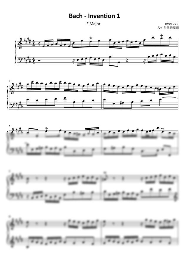 바흐 인벤션 1번 E키 전조 악보입니다!