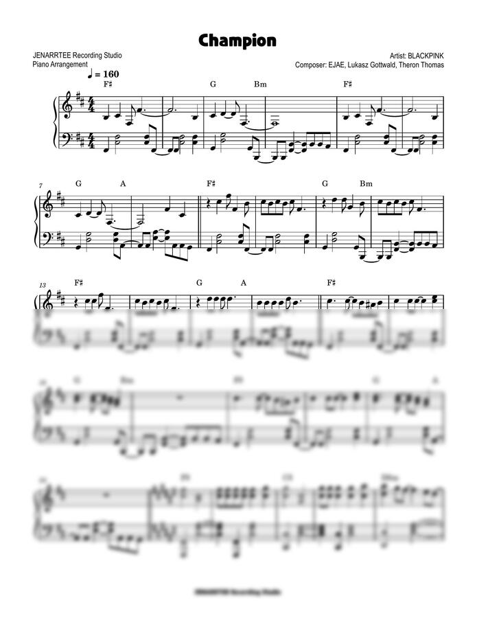 BLACKPINK 'Champion' piano sheet music (original + easy key).