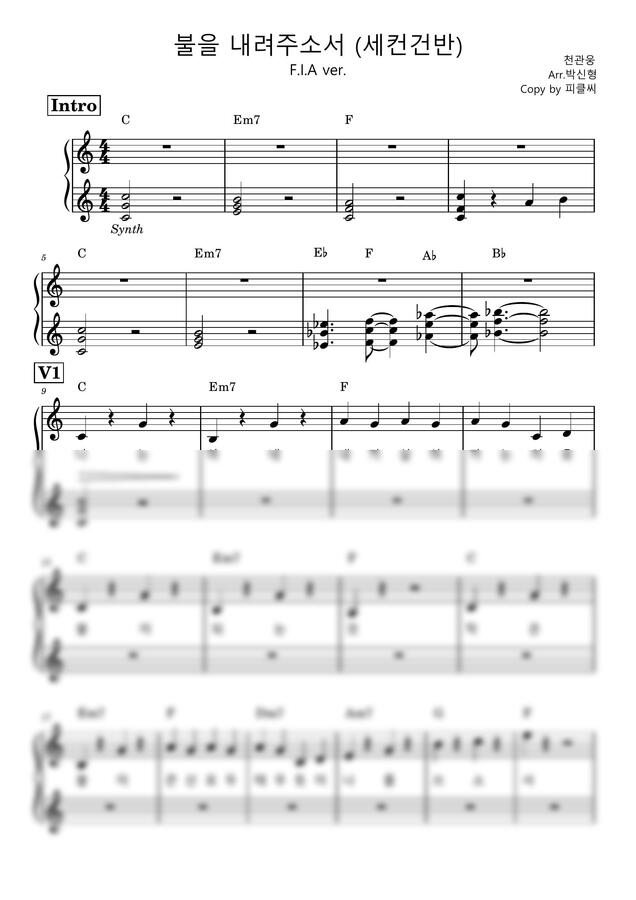 피아워십 - 불을 내려주소서 (세컨악보) (원곡 C Key) by 피클씨 1p 미리보기