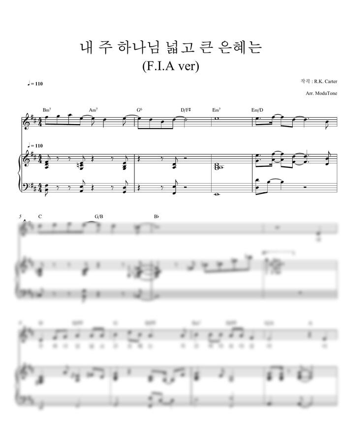 Russell K. Carter - [F.I.A 워십 ver] 내 주 하나님 넓고 큰 은혜는 l 피아노반주 by ModuTone 1p 미리보기