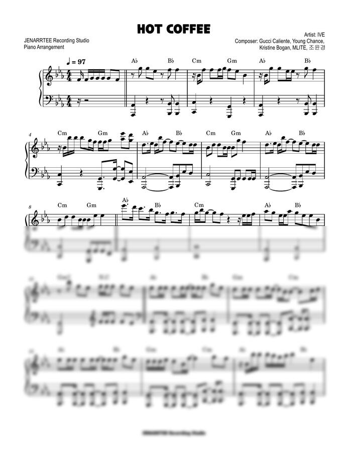 IVE 'HOT COFFEE' piano sheet music (original + easy key).