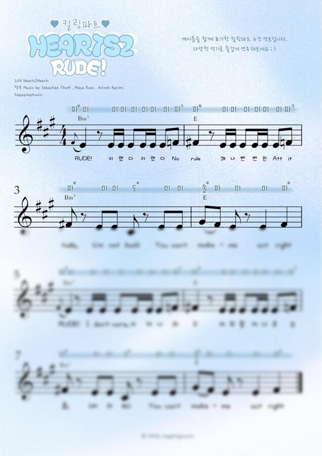 Hearts2Hearts(하츠투하츠) - RUDE! 비기너 (킬링파트 계이름) by happingmusic