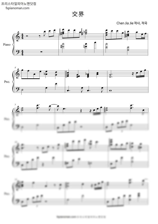 陈嘉杰(Chen Jia Jie) - 交界 (伴奏) Junction Point (다장조 악보 포함) by 프리스타일피아노맨닷컴