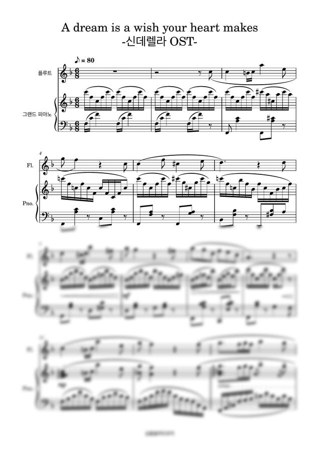 신데렐라 OST - A Dream is a Wish your heart makes-[플루트][피아노][성인취미연주곡]