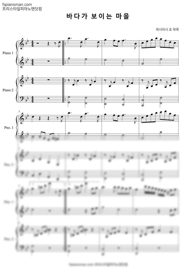 마녀 배달부 키키 OST - 바다가 보이는 마을[ 4hands ] (듀엣악보) by 프리스타일피아노맨닷컴