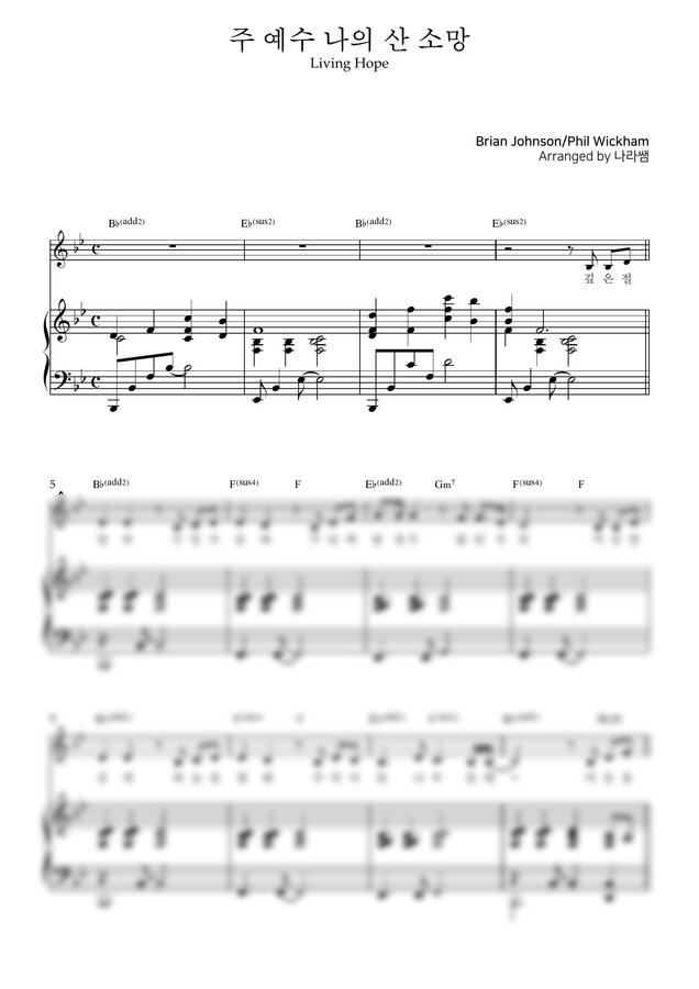 Phil Wickham - 주 예수 나의 산 소망 | LIVING HOPE | 피아노 반주 악보(3단)