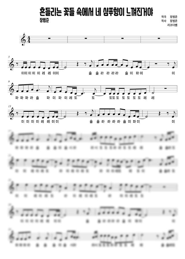 장범준 - 흔들리는 꽃들 속에서 네 샴푸향이 느껴진거야 (계이름) by 리코더쌤