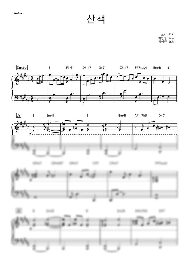 백예린 - 산책 (피아노 반주) by 이니어 inni:er
