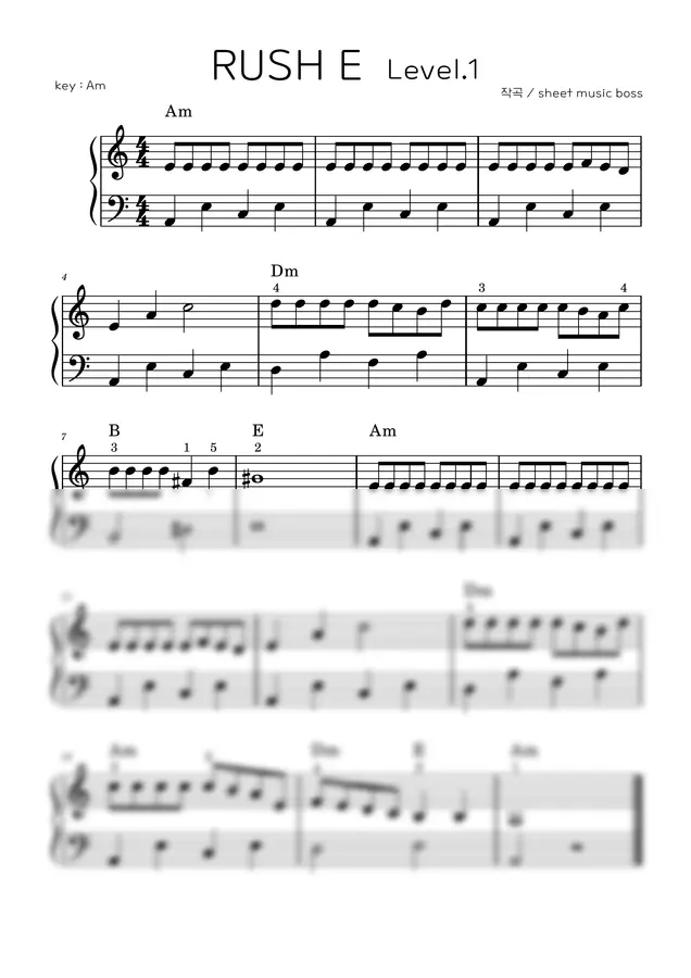 러쉬e를 아이들이 학원에서 즐겁게 칠 수 있도록 편곡한 악보입니다 !