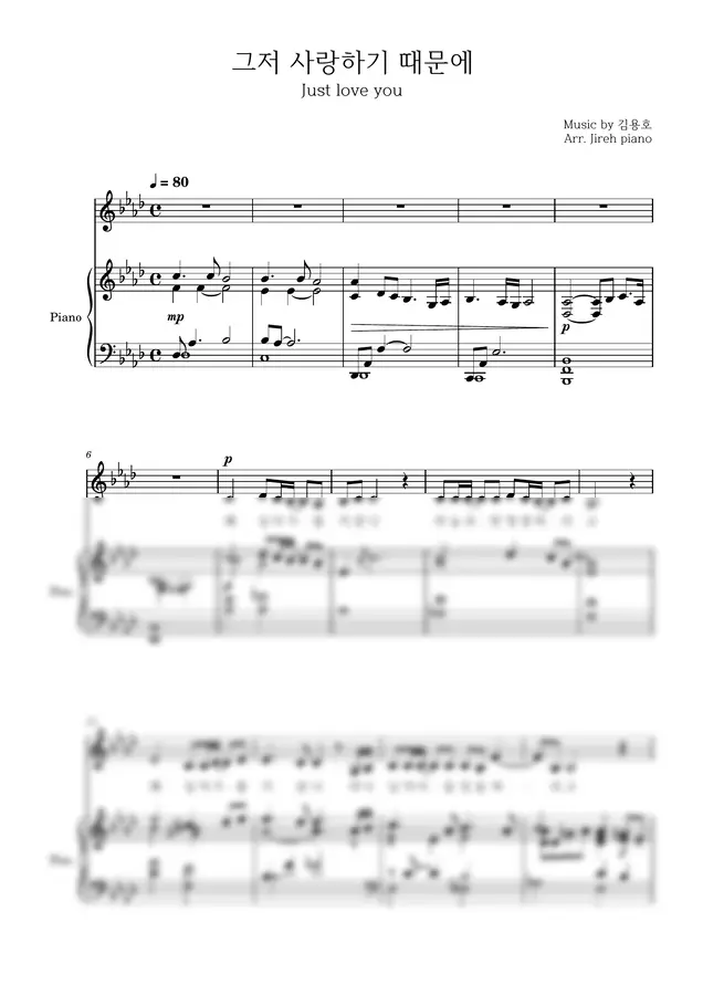 원곡 키, 조성 그대로 반주 버전 : 악보 > 김용호 - 그저 사랑하기 때문에 / 솔로 + 반주 / 부활절, 고난주간 | Jireh piano