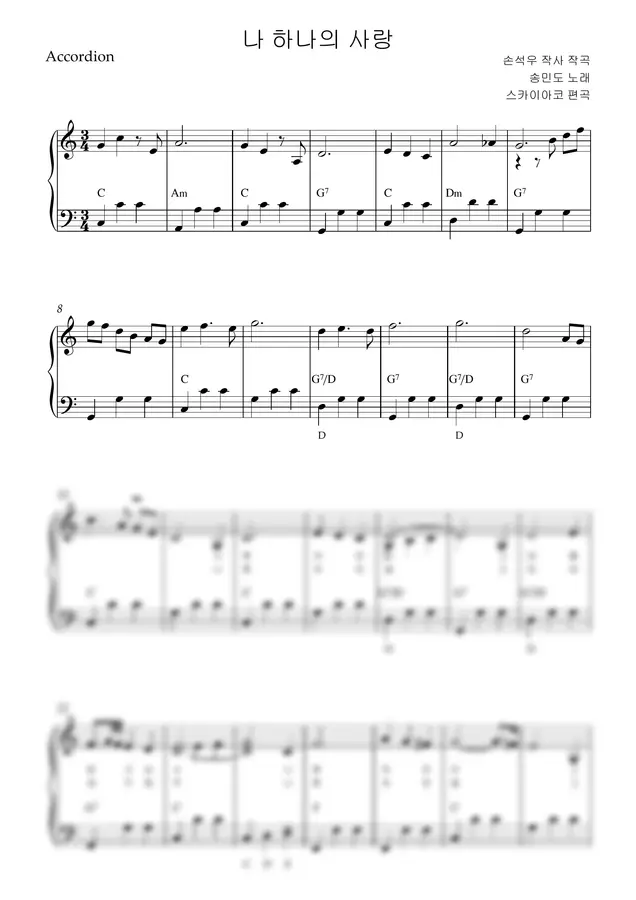 송민도 - 나 하나의 사랑 (아코디언악보, 난이도 고급) by 스카이아코