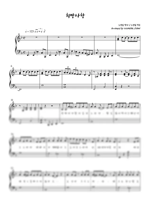 이번 피아노 악보는 변진섭 "희망사항"의 매우 쉬운 악보입니다.