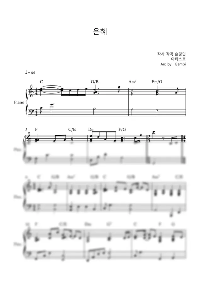 피아워십 신나는 찬송가 편곡 버젼 악보 모음집(Part 1. 총 11곡)