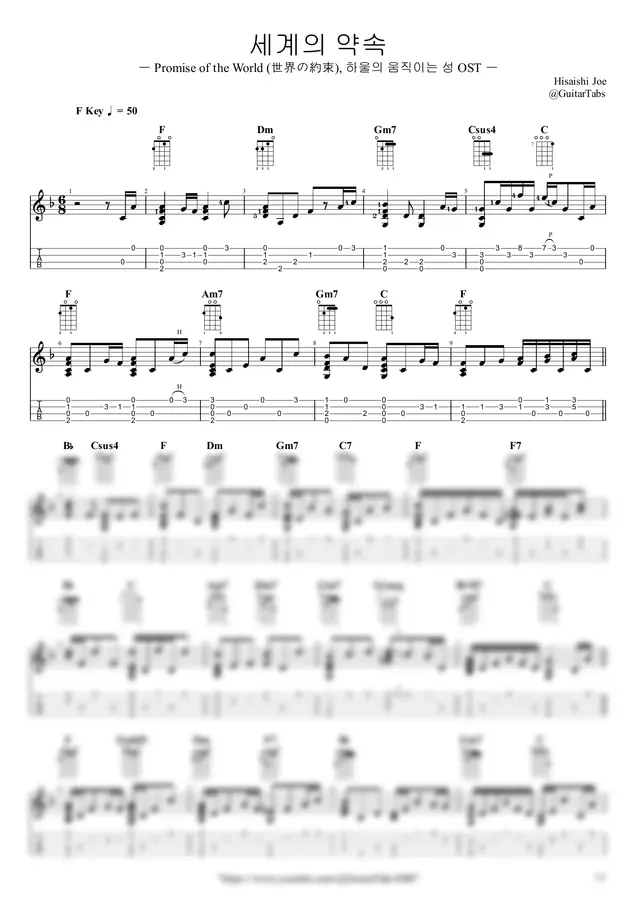 Hisaishi Joe - [지브리ジブリ OST] 세계의 약속(하울의 움직이는 성 OST) by GuitarTabs