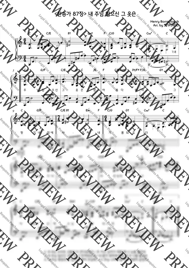 찬송가 87장 - 내 주님 입으신 그 옷은(C key) (찬송가반주) by JINPIANO 1p 미리보기