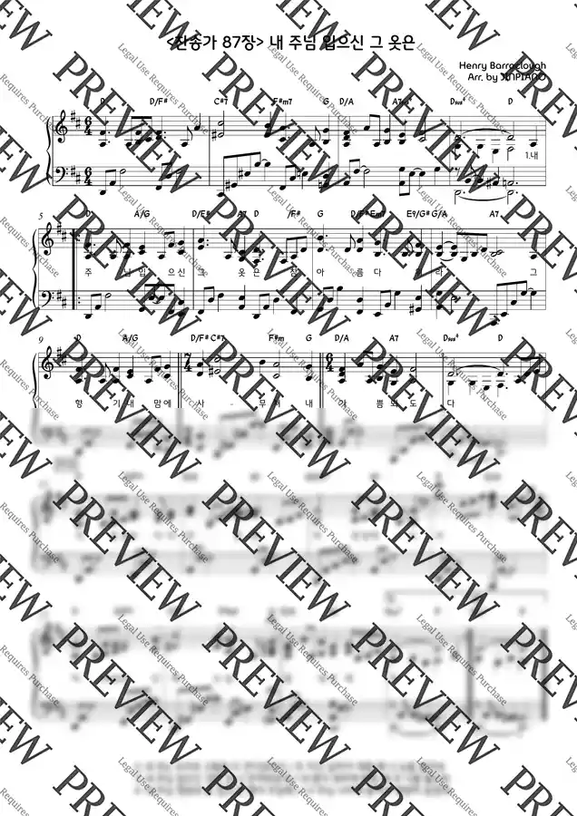 찬송가 87장 - 내 주님 입으신 그 옷은(D key) (찬송가반주) by JINPIANO 1p 미리보기