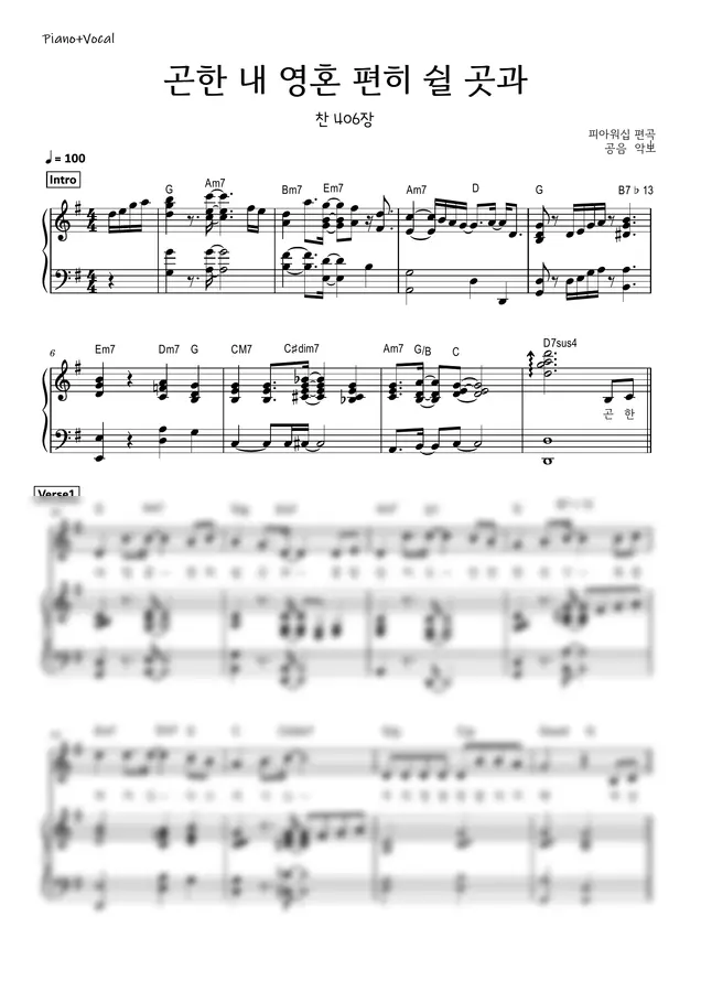 피아워십ver. - 곤한 내 영혼 편히 쉴 곳과(메인건반 F/G/A키)