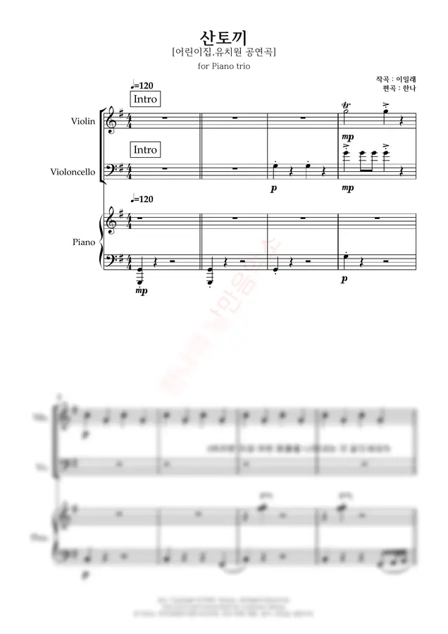 [어린이집, 유치원 공연을 위한 피아노 트리오 악보]