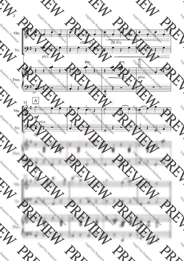 **피아노 트리오 편성(피아노, 바이올린, 첼로)**으로 편곡한 악보입니다.