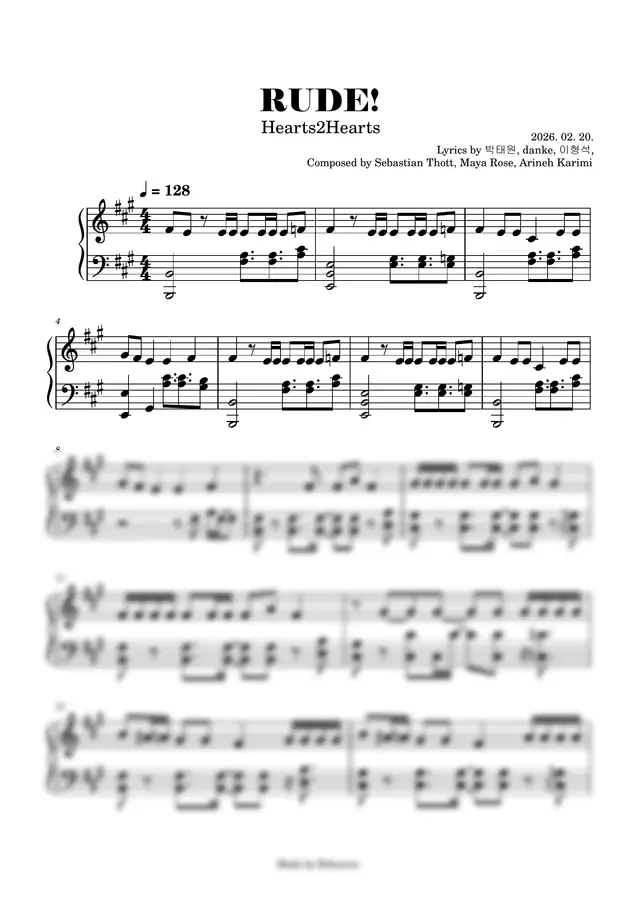 Hearts2Hearts (하츠투하츠)의 RUDE! 중급 악보입니다! 즐거운 연주되세요 감사합니다!!