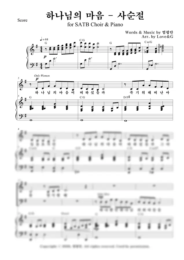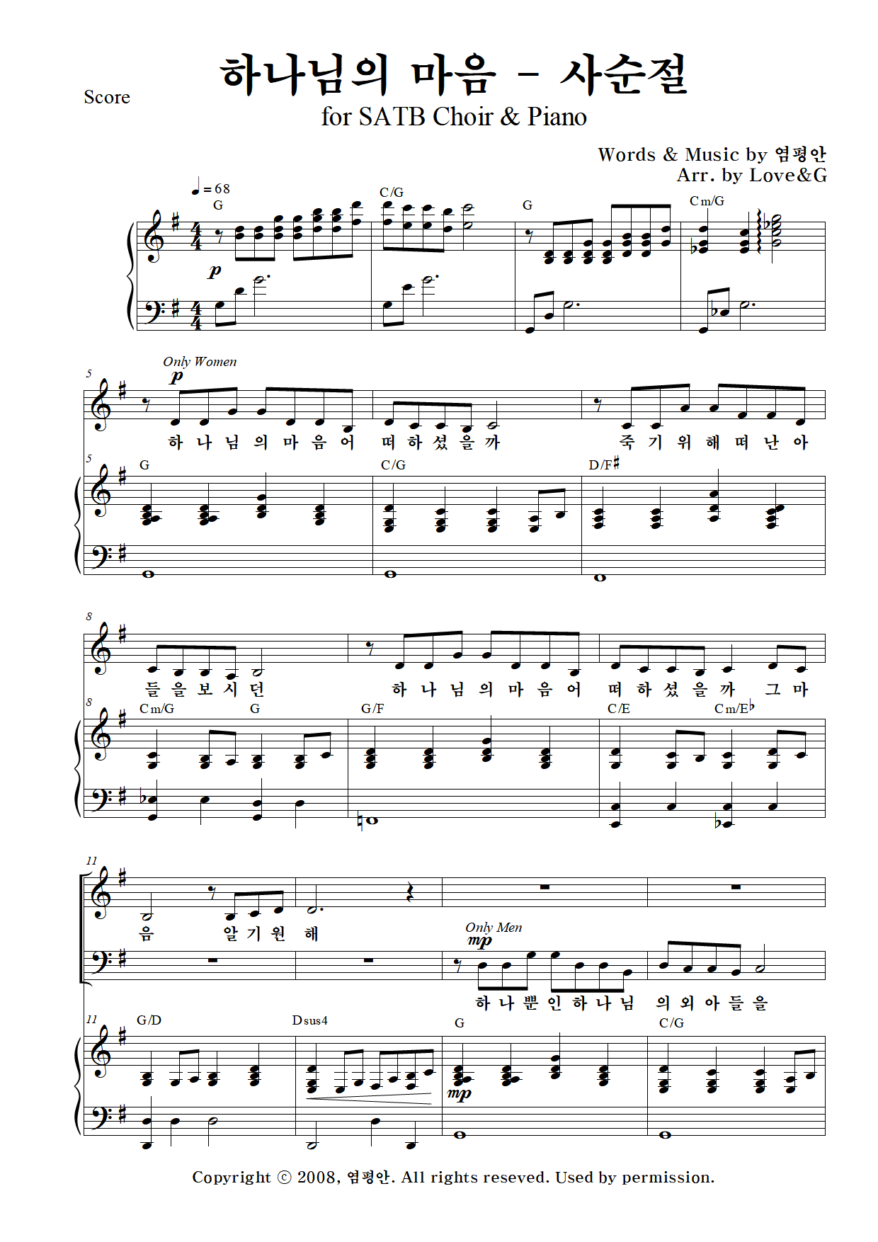 염평안 - 하나님의 마음 4부합창 SATB 입니다.