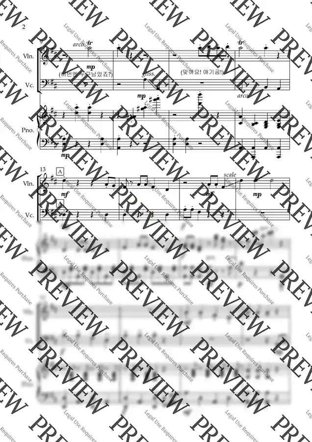 **피아노 트리오 편성(피아노, 바이올린, 첼로)**으로 편곡한 악보입니다.
