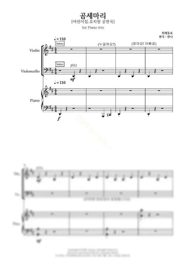 [어린이집, 유치원 공연을 위한 피아노 트리오 악보]