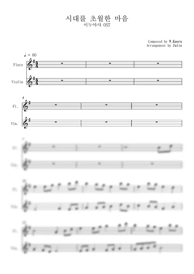 '시대를 초월한 마음(이누야샤 OST)' 플롯 바이올린 2중주 입니다.