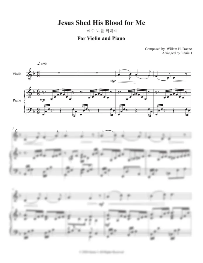 찬송가 144장 - 예수 나를 위하여 (바이올린 & 피아노) by Jinnie J0