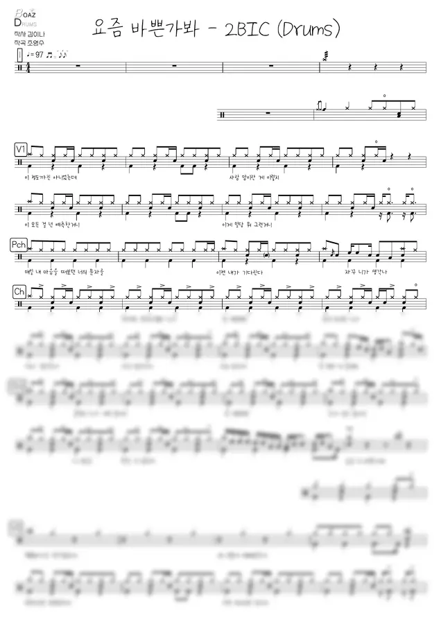 투빅(2BIC) - 요즘 바쁜가봐 (드럼 악보) by Boaz Jo