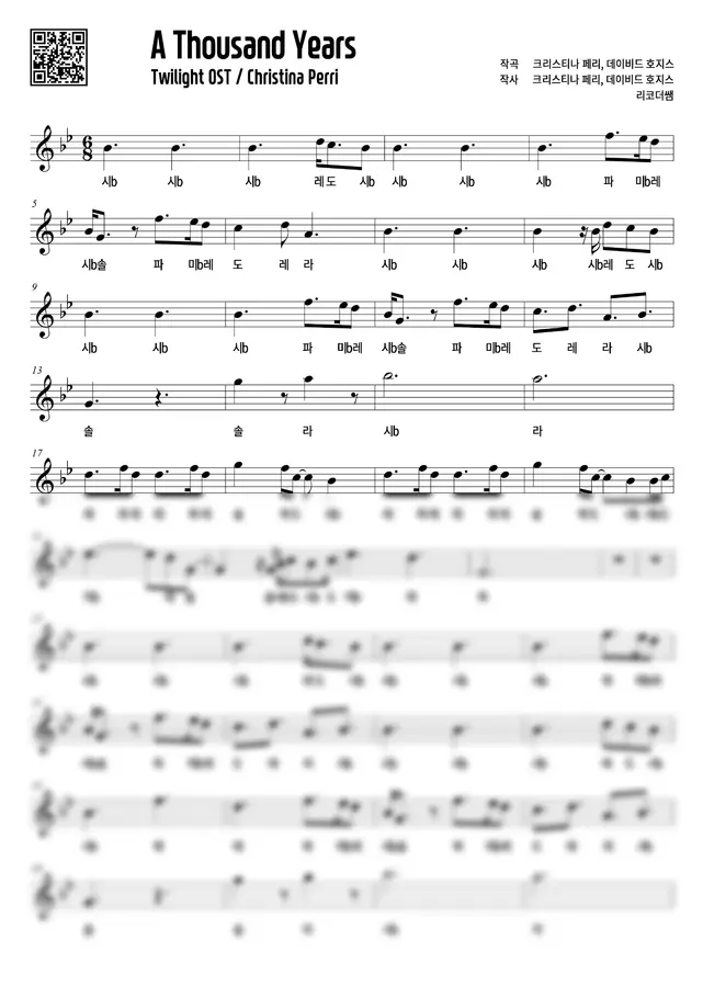 Twilight OST - A Thousand Years (계이름) by 리코더쌤