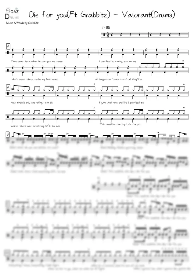 Valorant - Die For You (Drum Sheet) by Boaz Jo