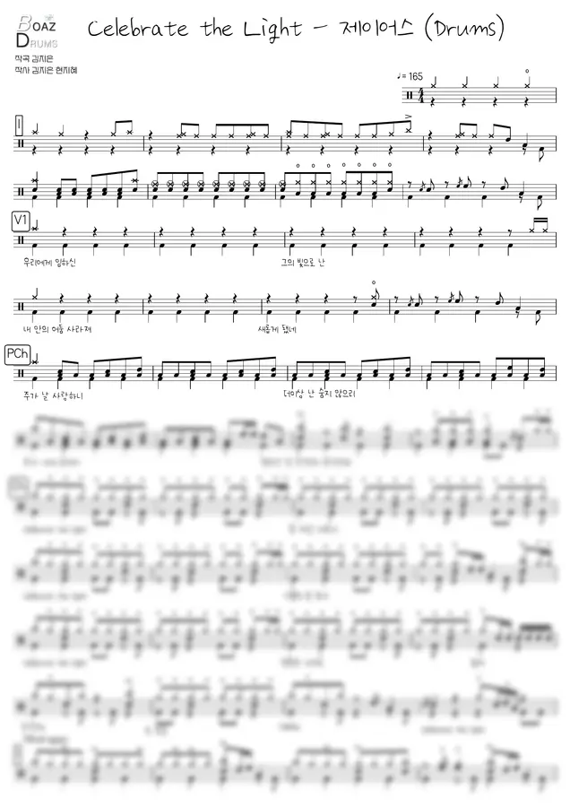제이어스 - Celebrate the Light (드럼 악보) by Boaz Jo