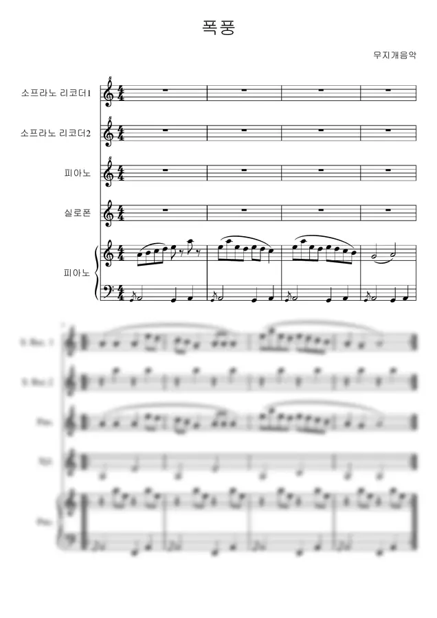 창작곡 - 폭풍(피아노, 리코더, 실로폰 앙상블) by 무지개음악
