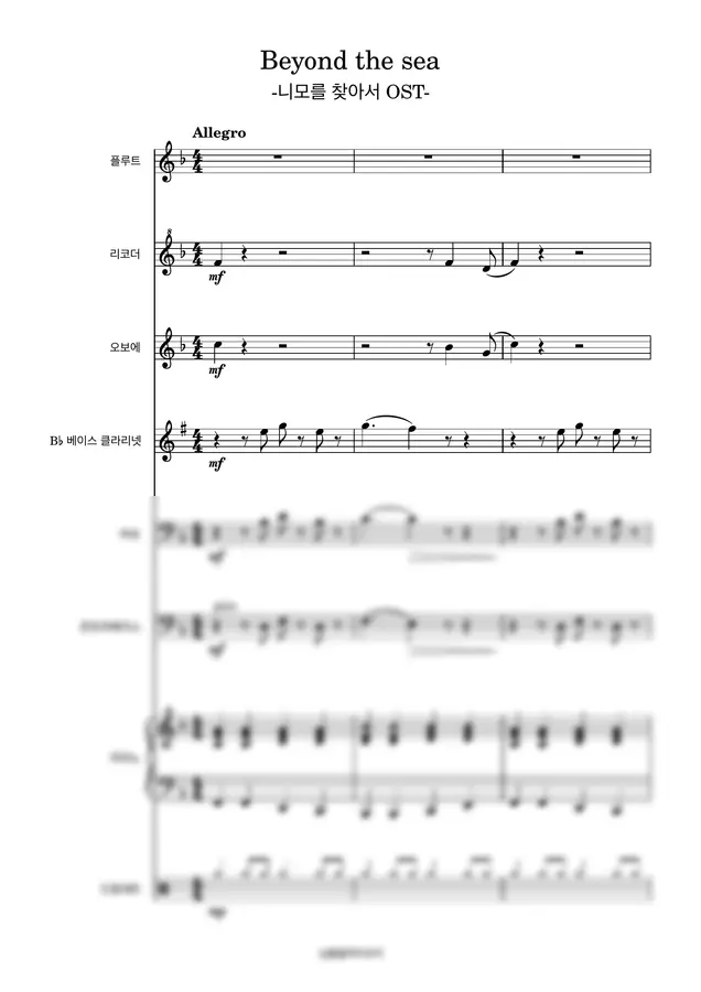 니모를 찾아서 OST - Beyond the Sea 비욘드 더 씨-[목관 앙상블][피아노][연주회 곡]