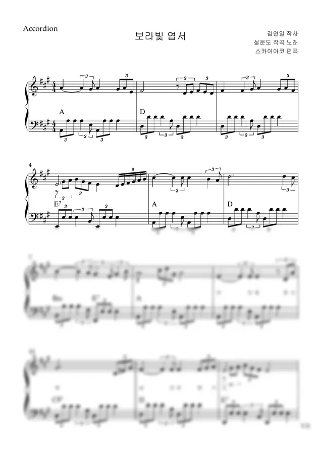 설운도 - 보라빛 엽서(아코디언악보, 난이도 고급, A key) by 스카이아코