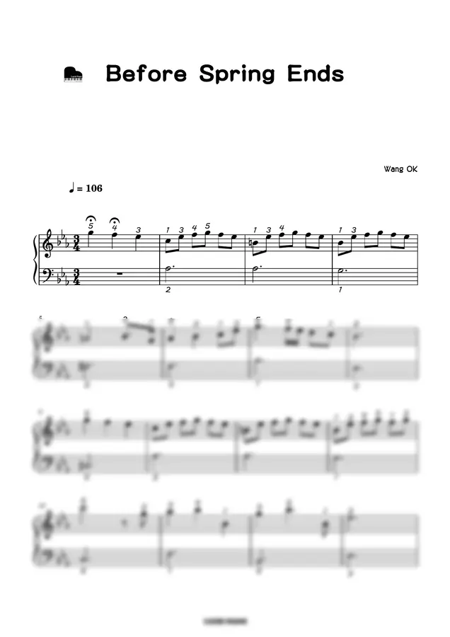 Wang OK - Before Spring Ends(짧고 쉬움, Eb + C , 계이름 악보 포함) by Lucid Piano