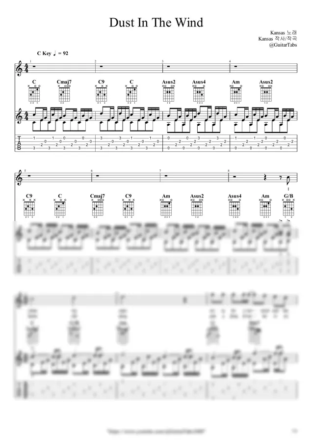 C Key / 6p / 2단(노래+반주) / 5선(Staff) / 타브(TAB) / 가사(Lyrics) / 코드(Chords)